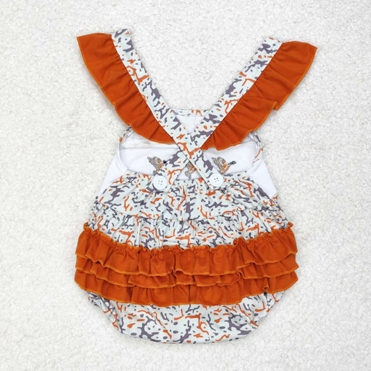 SR1742 Camo Duck Embroidery Print Baby Girls Summer Bubble Romper