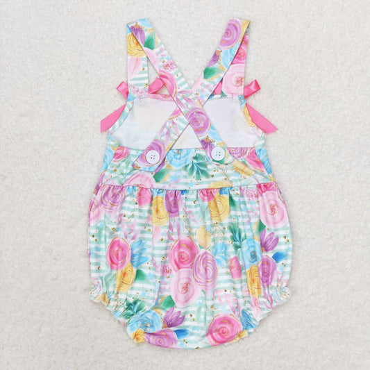 SR1424 Colorful Flowers Print Baby Girls Summer Romper