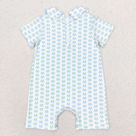 SR1436 Blue Crab Print Baby Boys Summer Romper