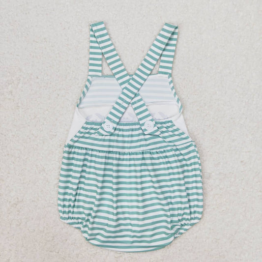 SR1102 Worker Embroidery Blue Stripes Print Baby Boys Summer Romper