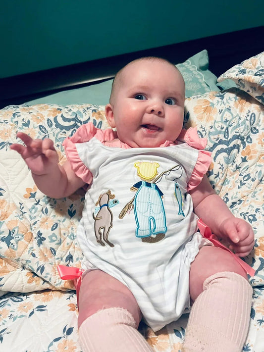 Go Fishing Embroidery Stripes Print Kids Summer Matching Clothes Sibling Wear