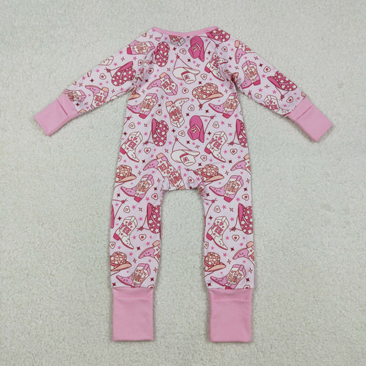Hat Boots Hearts Pink Print Girls Valentine's Day Pajamas Clothes Sisters Western Matching Wear
