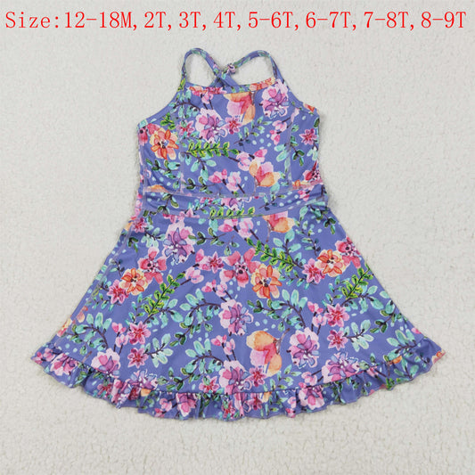 8 Print Flowers Girls Summer Knee Length Shorts Yoga Dress Sisters Wear