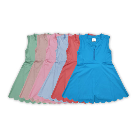 6 Colors Zipper Sleeveless Top Girls Summer Knee Length Yoga Dress Sisters Wear