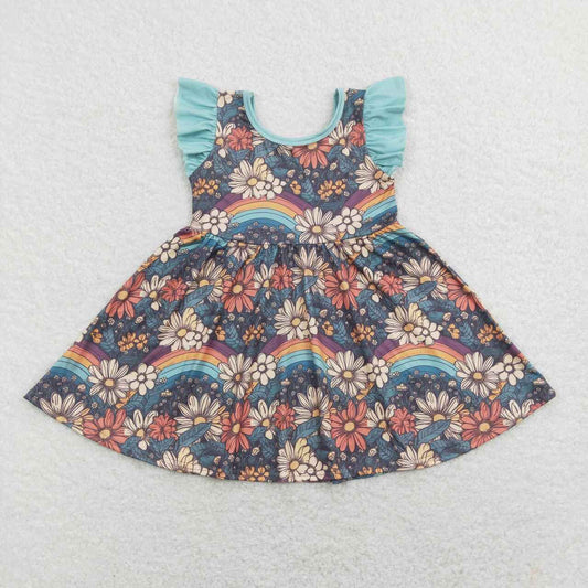 Blue Flowers Ruffles Sisters Summer Matching Clothes