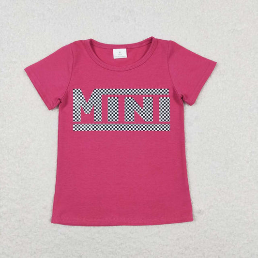 GSSO1215 Hot Pink MINI Vinyl Top Black Plaid Shorts Girls Summer Clothes Set
