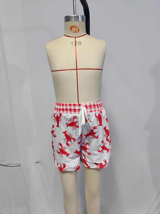 S0187 Boys Blue Crab Print 4th of July Swim Trunks