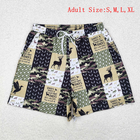 S0466 Adult Duck Deer Green Camo Print Man Swim Trunks