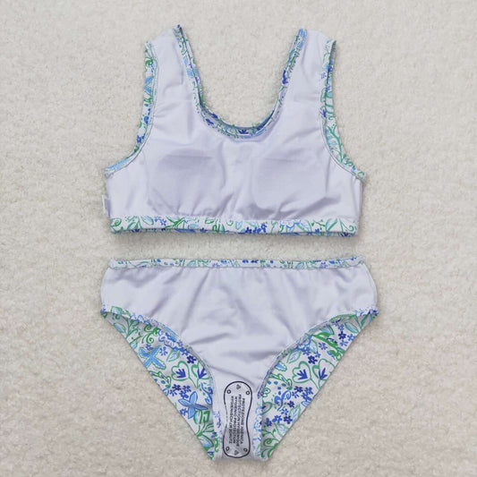 S0279 Flowers Print Girls 2 Pieces Swimsuits