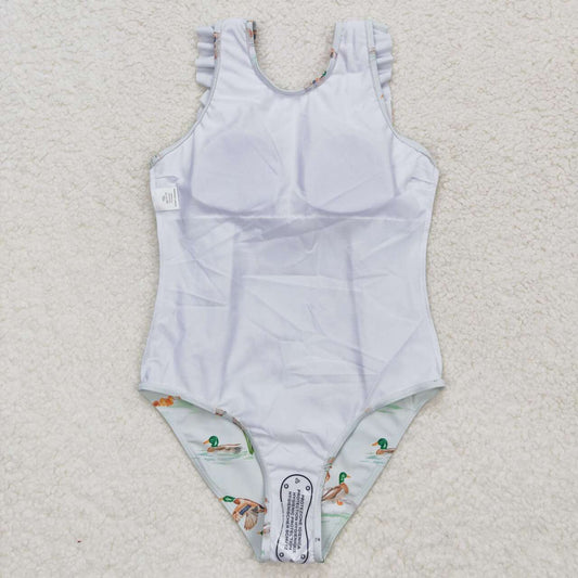 S0265 Duck Print Ruffle Girls 1 Piece Swimsuits
