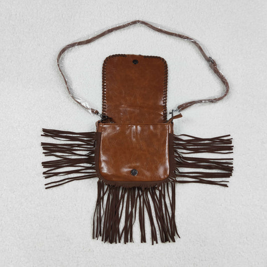 USA-Shop BA0374 Brown Flowers Zipper Western Leather Tassel Handbag
