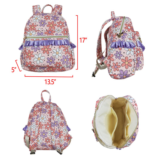 USA-Shop BA0240 Pink Flowers Print Ruffle Backpack Girls Bags