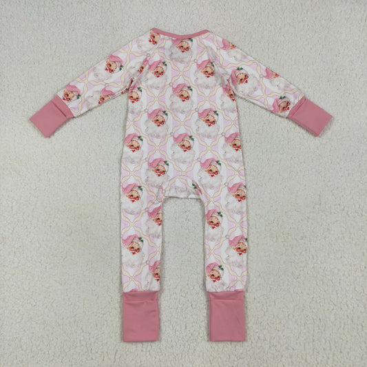 USA-Shop LR2224 Santa Pink Print Baby Girls Christmas Zipper Sleeper Romper