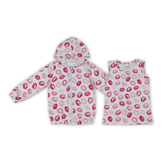 Pink Kiss Print Girls Valentine's Day Vest Top & Hoodie Jackets Sisters Wear