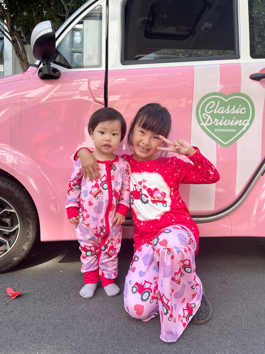 GLP0904 Pink Truck Heart Print Girls Valentine's Day Pajamas Clothes Set
