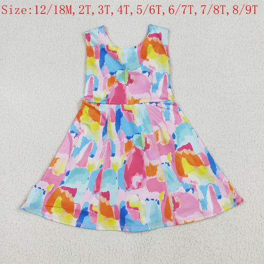 GSD2629 Tie-dye Print Girls Summer Knee Length Yoga Dress