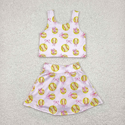 2 Colors Baseball Bows Tank Top Shorts Skirts Girls Summer Yoga Clothes Set Sisters Wear