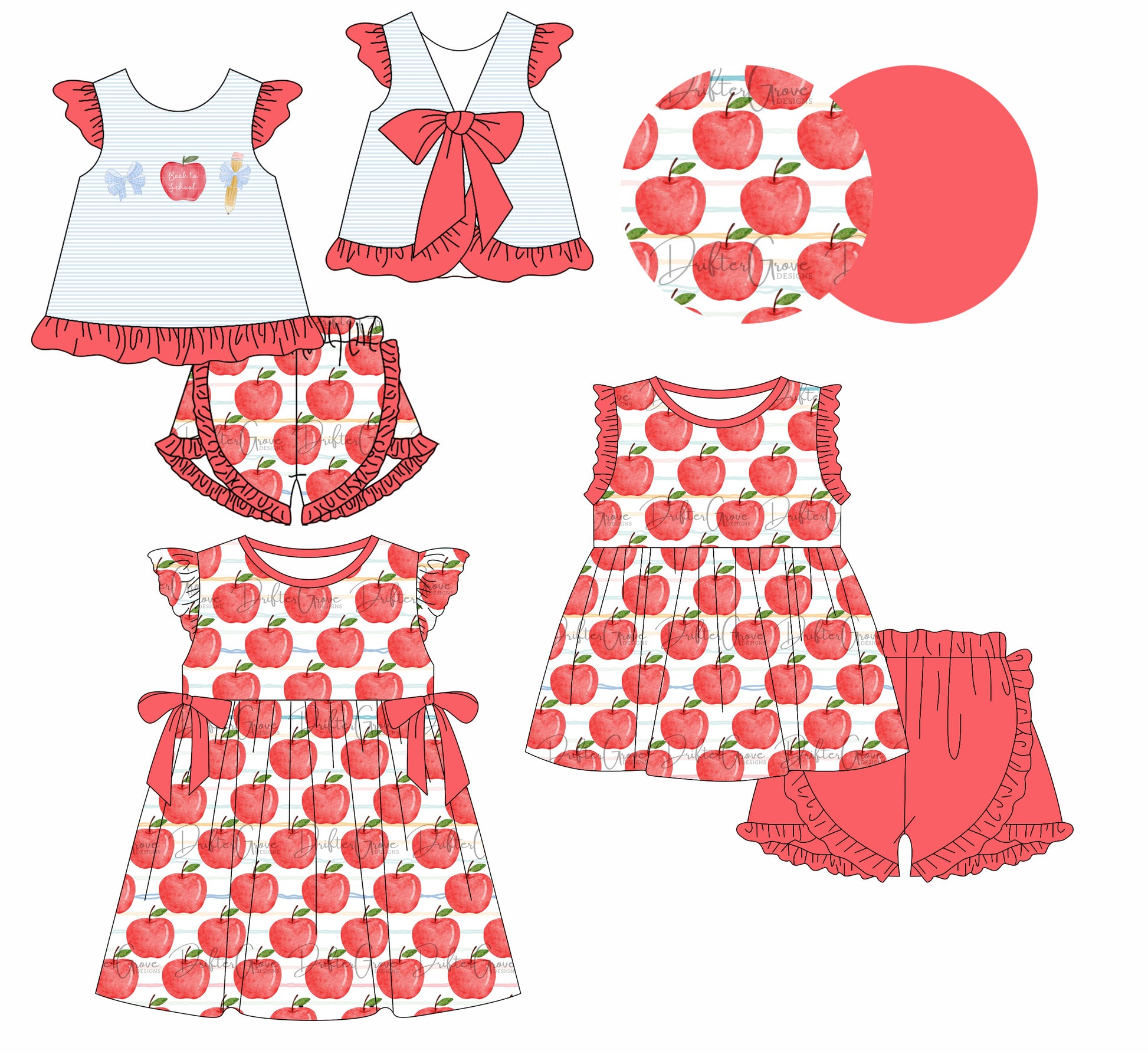 1.18(Custom Design Preorder MOQ 5 Each Design) Apple Print Girls Back to School Matching Clothes Sisters Wear