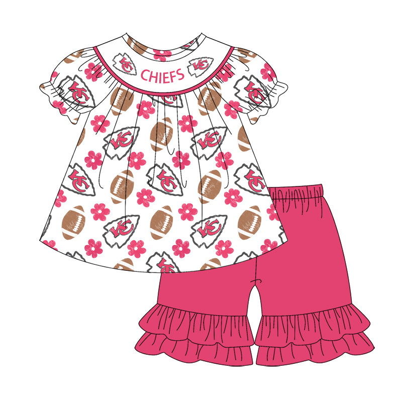 1.9(Custom Design Preorder MOQ 5 Each Design) Team's CHIEFS Print Kids Summer Matching Clothes Sibling Wear