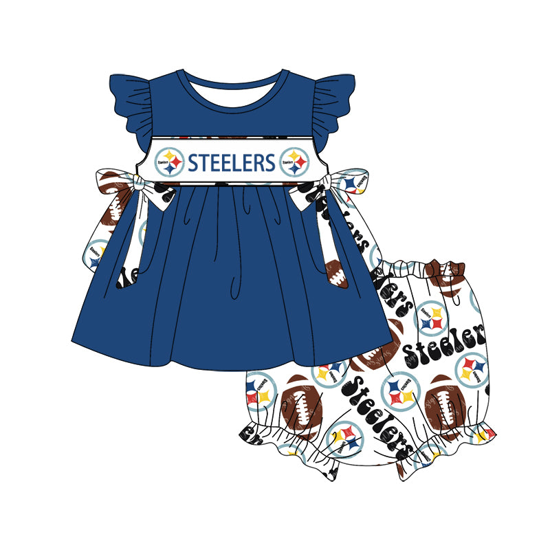 1.9(Custom Design Preorder MOQ 5 Each Design) Team's STEELERS Print Kids Summer Matching Clothes Sibling Wear