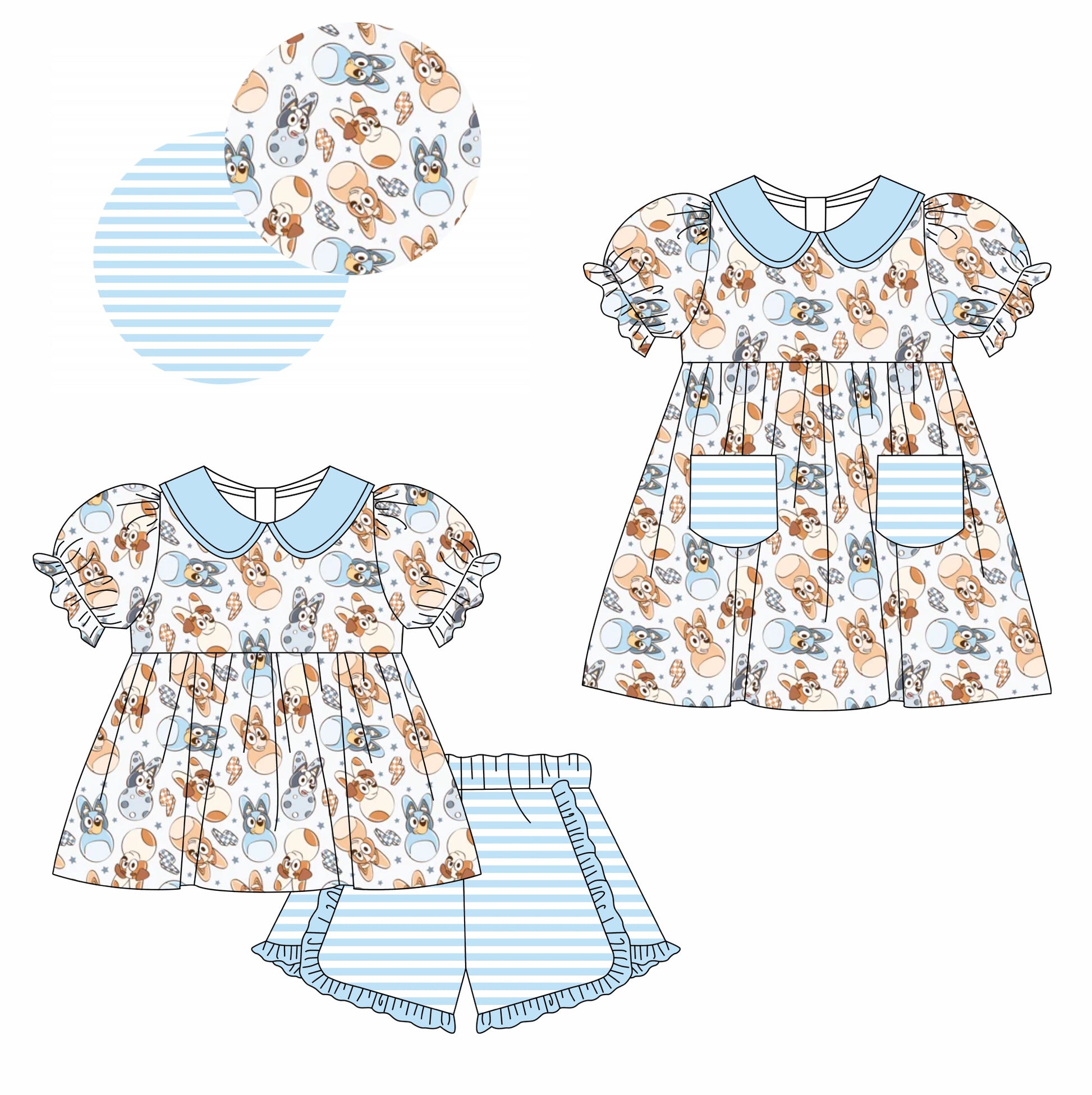 11.13(Custom Design Preorder MOQ 5 Each Design) Cartoon Dog Bunny Print Girls Easter Matching Clothes Sisters Wear