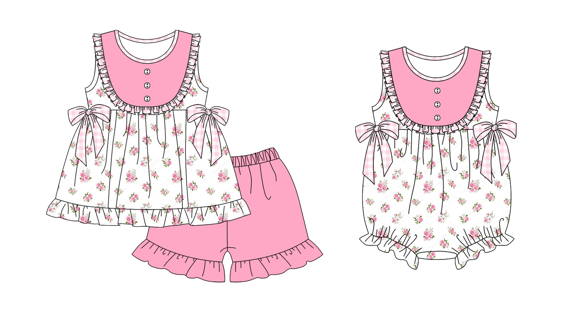 11.18(Custom Design Preorder MOQ 5 Each Design) Small Flowers Pink Print Girls Summer Matching Clothes Sisters Wear