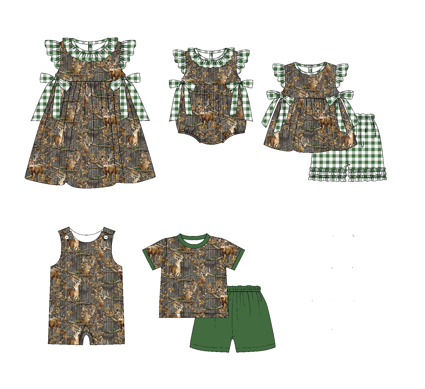 11.20(Custom Design Preorder MOQ 5 Each Design) Branch Deer Camo Print Kids Summer Matching Clothes Sibling Wear