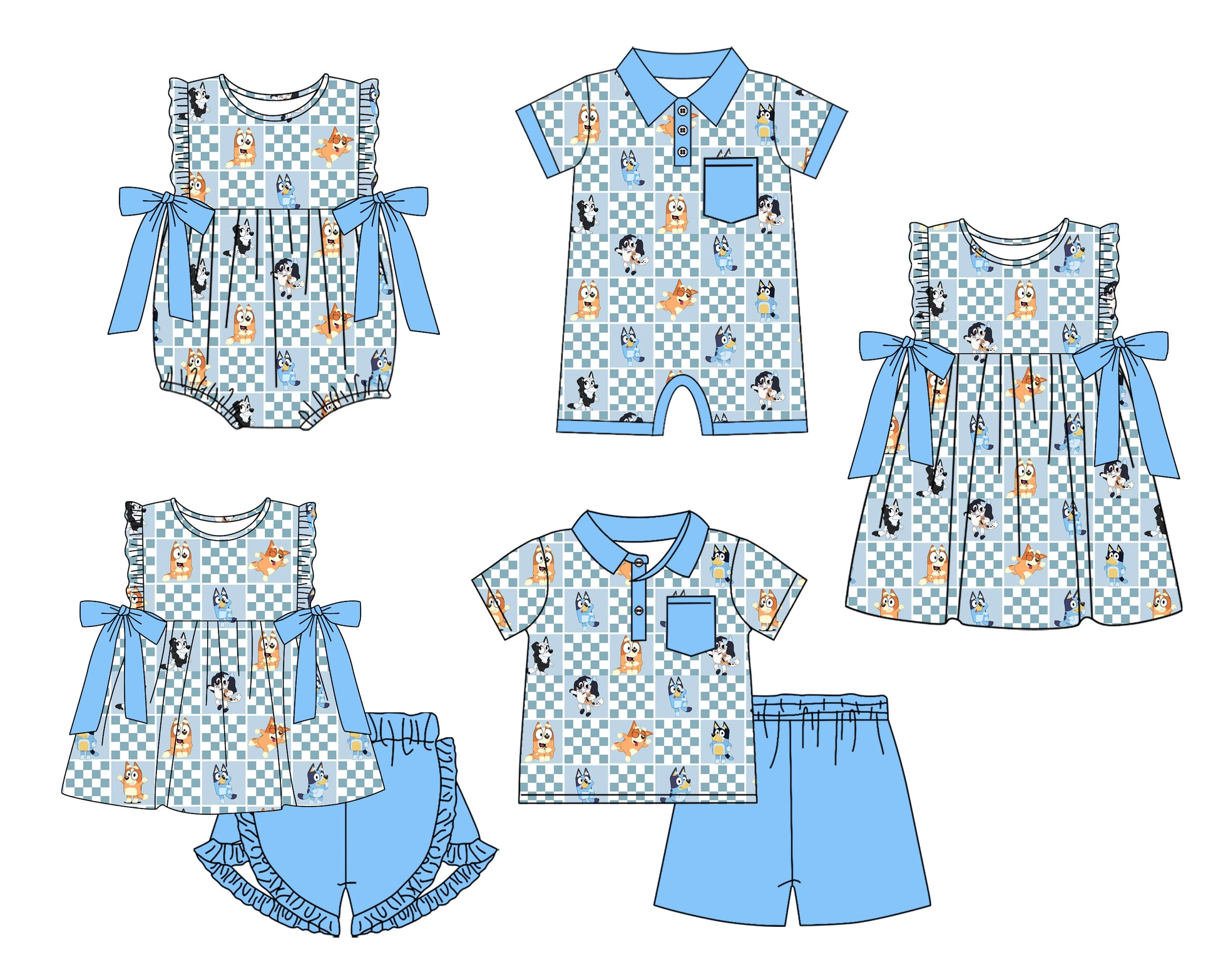 11.22(Custom Design Preorder MOQ 5 Each Design) Cartoon Dog Plaid Print Kids Summer Matching Clothes Sibling Wear