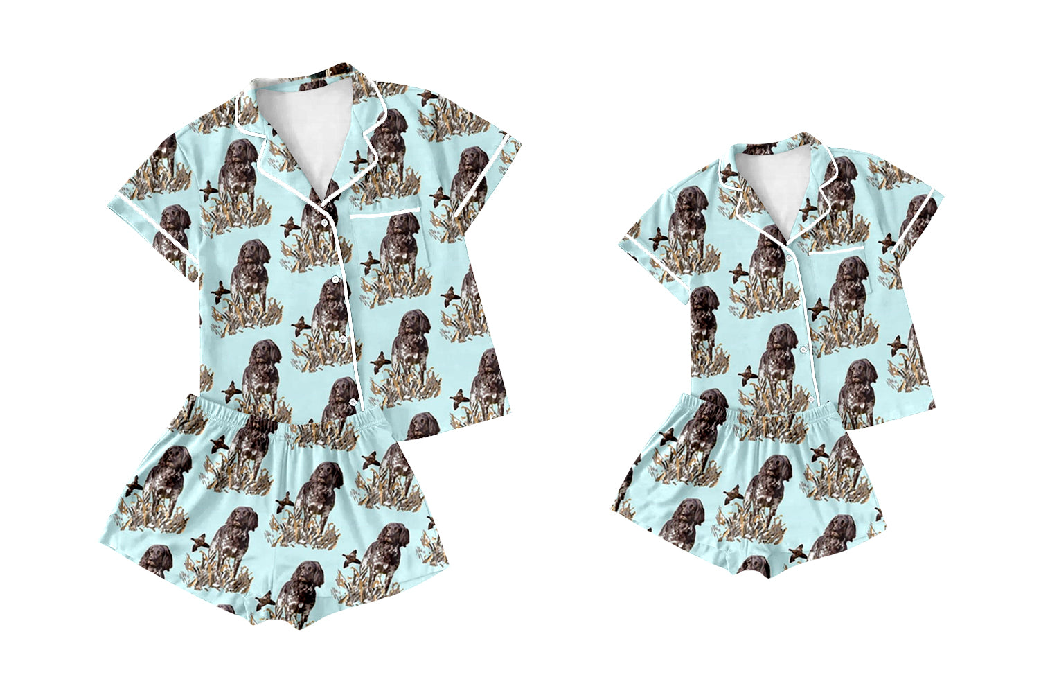 11.27(Custom Design Preorder MOQ 5 Each Design) Dog Duck Hunting Print Buttons Pajamas Sets Mom and Me Summer Matching Clothes