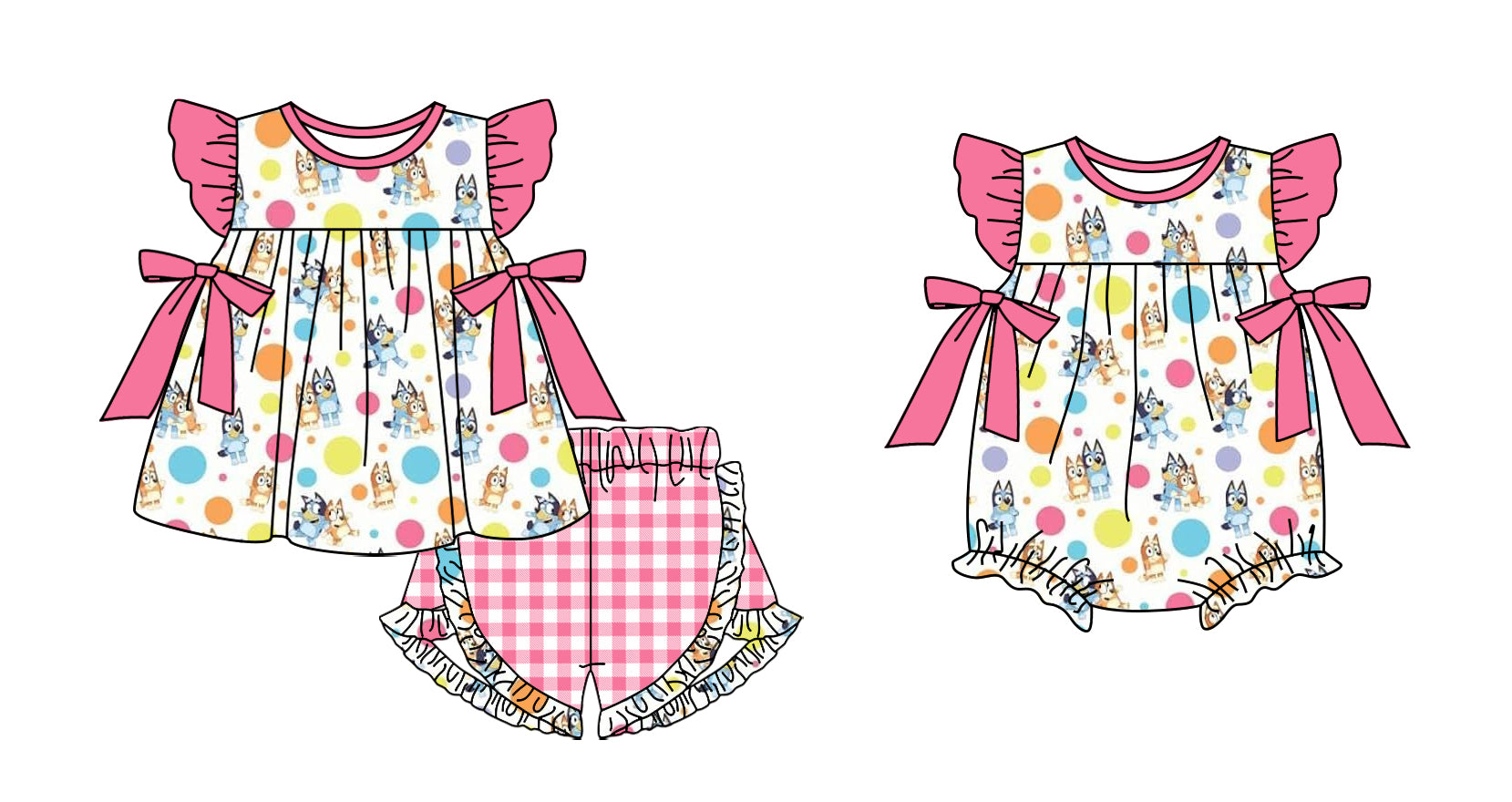 11.28(Custom Design Preorder MOQ 5 Each Design) Cartoon Dog Print Girls Summer Matching Clothes Sisters Wear