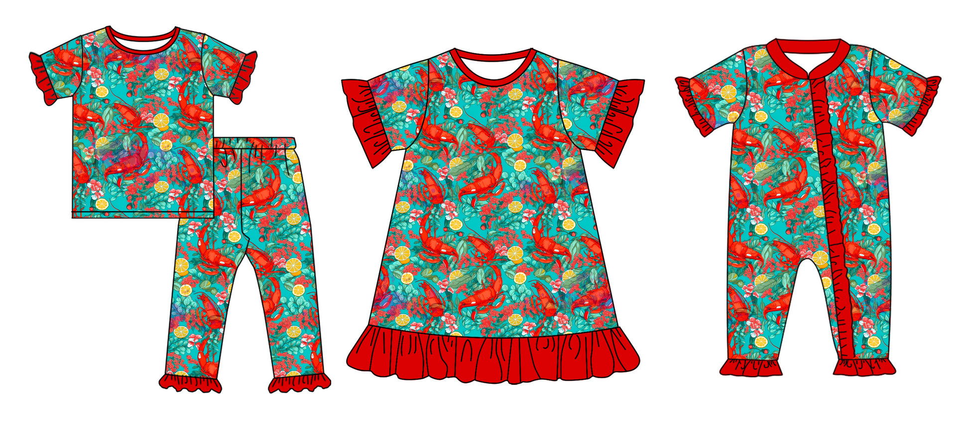 11.28(Custom Design Preorder MOQ 5 Each Design) Crayfish Flowers Print Girls Matching Clothes Sisters Wear
