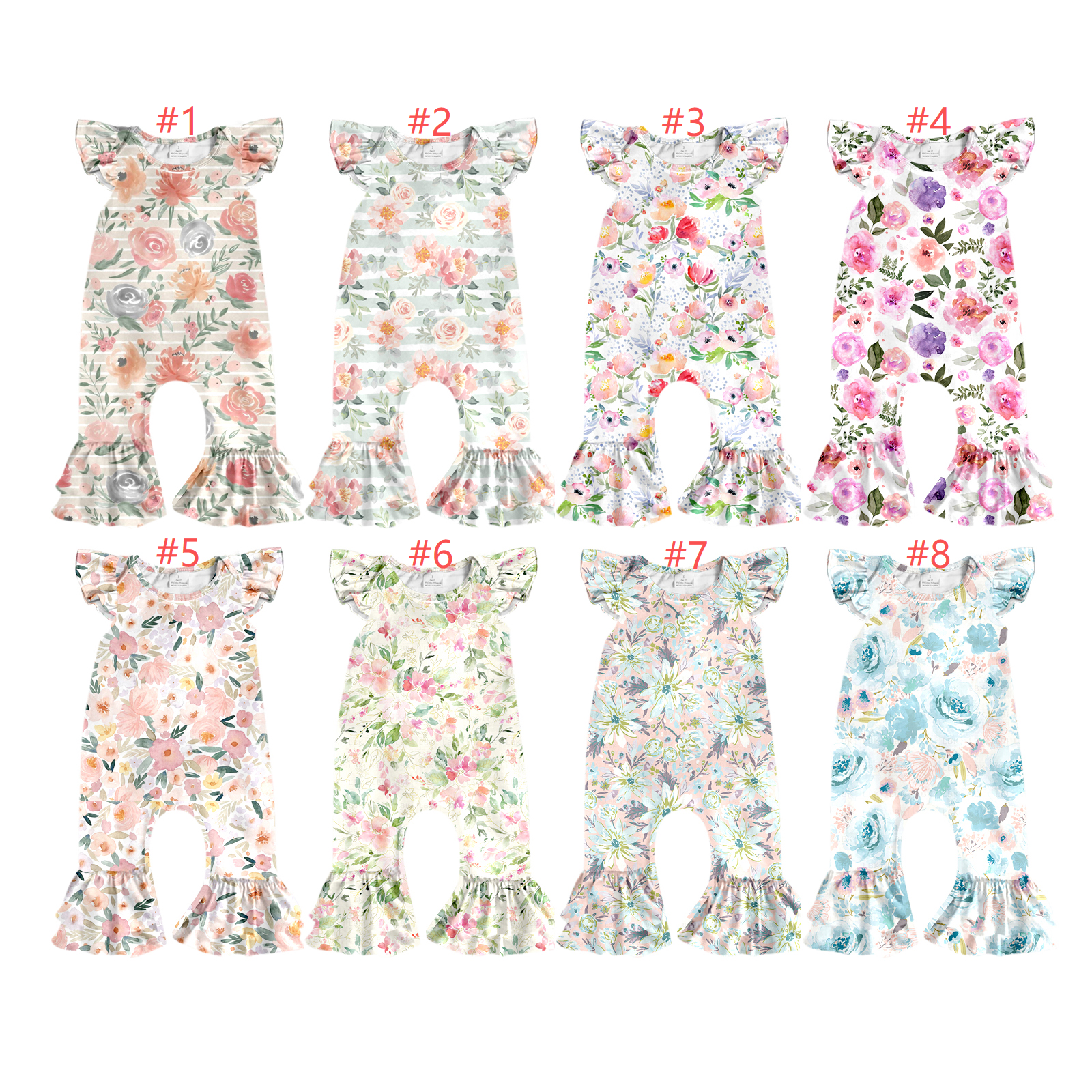 11.29(Custom Design Preorder MOQ 5) Colorful Flowers Print Baby Girls Summer Ruffles Romper