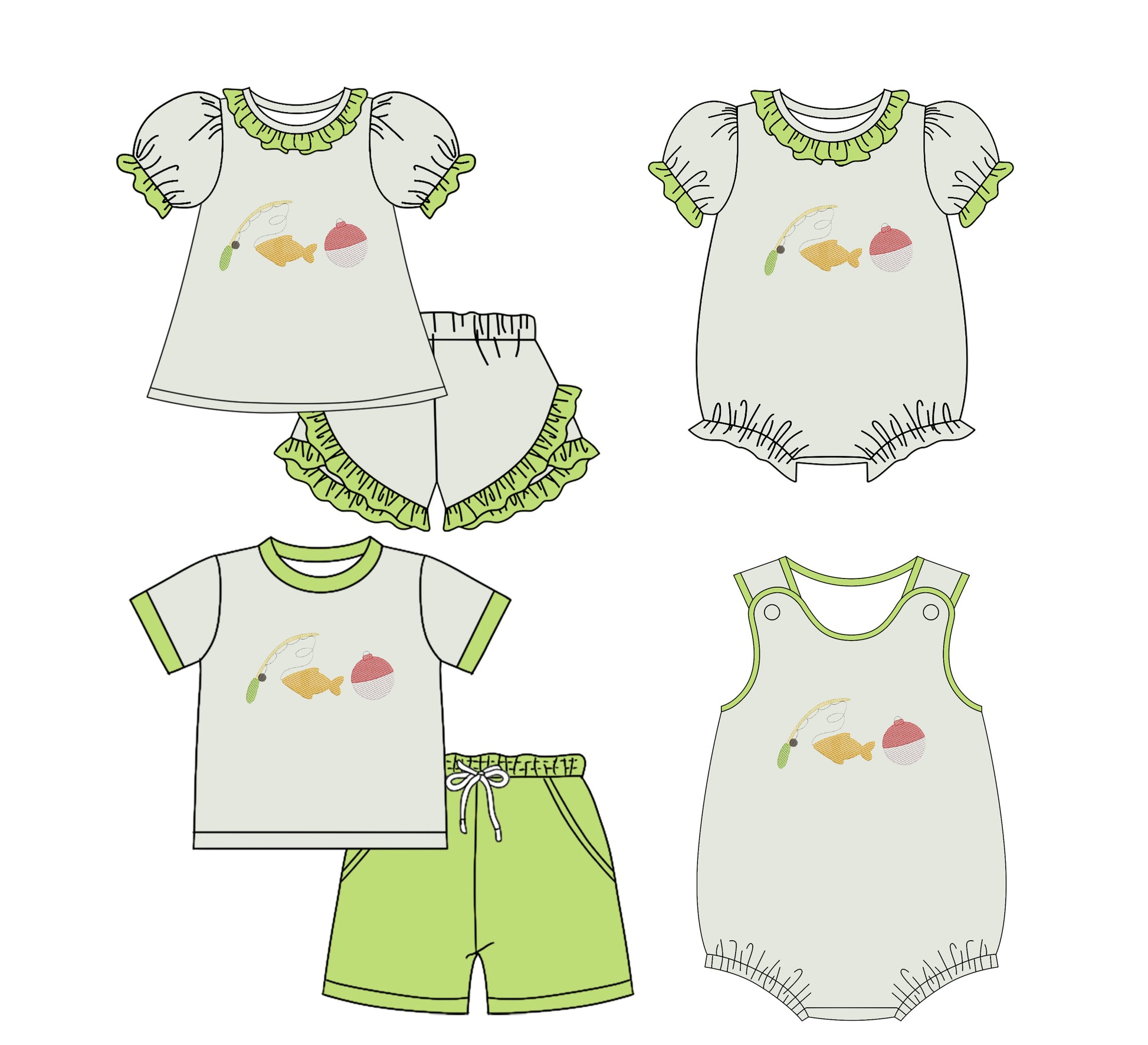 11.29(Custom Design Preorder MOQ 5 Each Design) Fishing Print Kids Summer Matching Clothes Sibling Wear