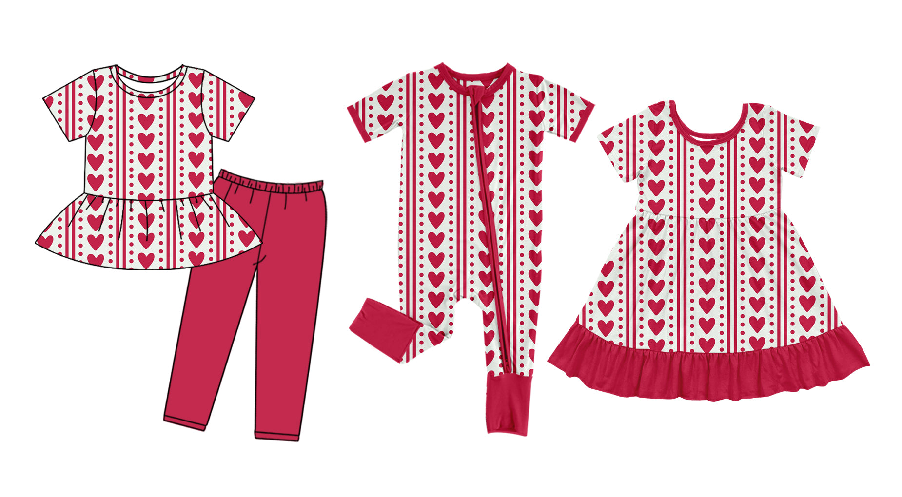 11.4(Custom Design Preorder MOQ 5 Each Design) Heart Print Girls Valentine's Day Matching Clothes Sisters Wear