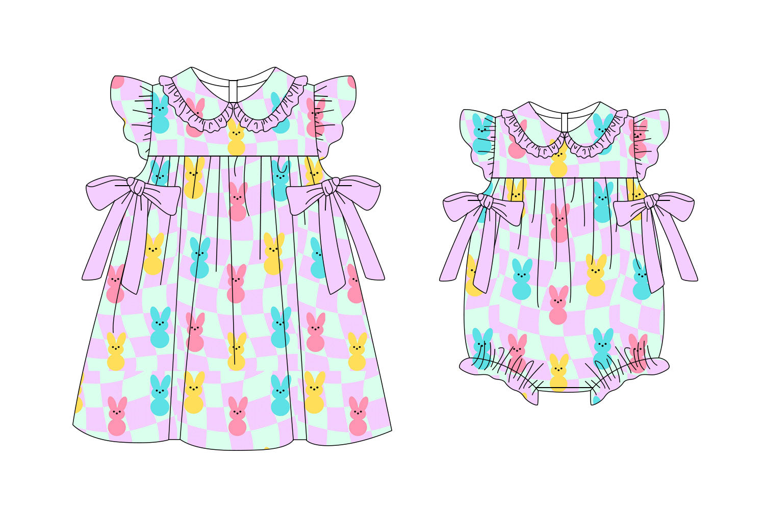 11.6(Custom Design Preorder MOQ 5 Each Design) Colorful Bunny Plaid Print Girls Easter Matching Clothes Sisters Wear