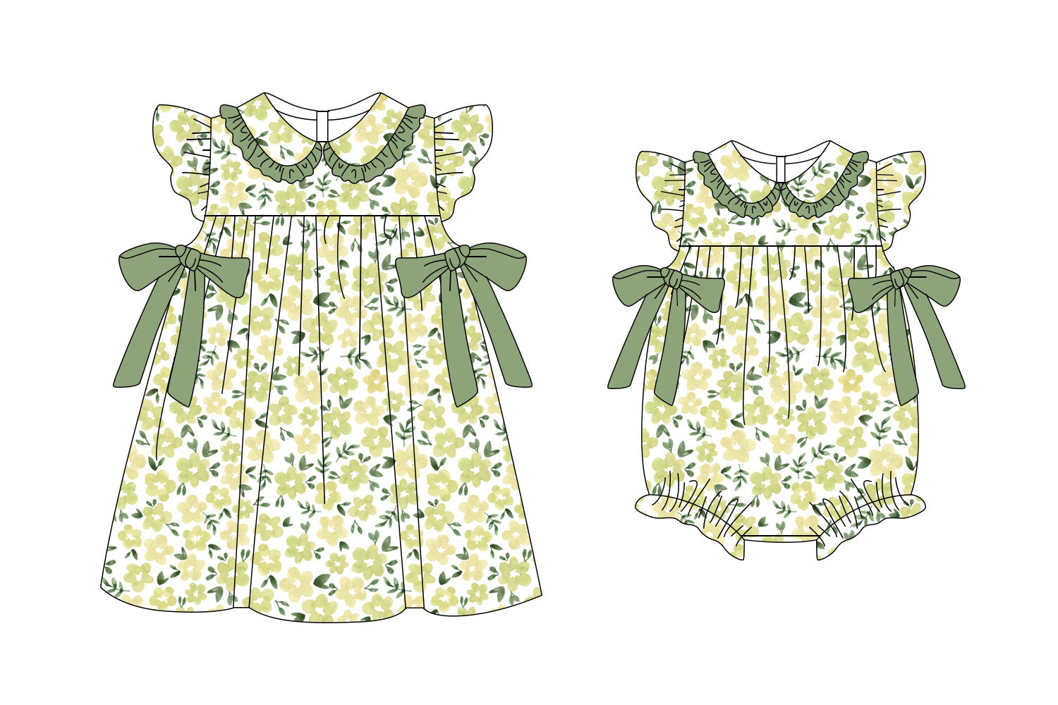 11.6(Custom Design Preorder MOQ 5 Each Design) Green Flowers Print Girls Summer Matching Clothes Sisters Wear