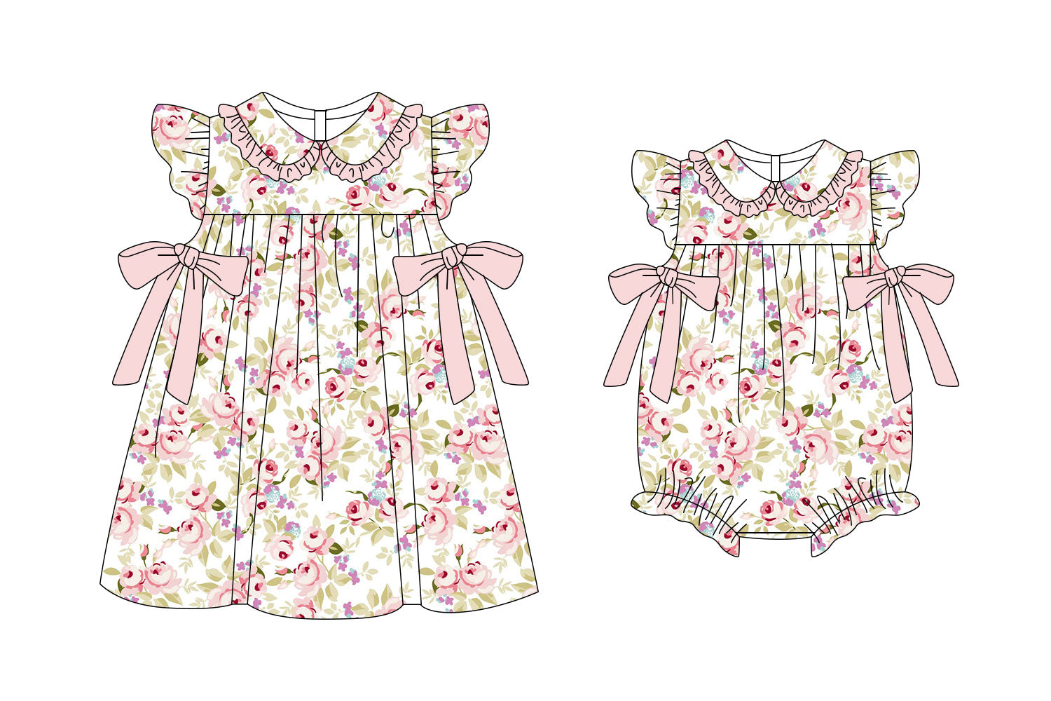 11.6(Custom Design Preorder MOQ 5 Each Design) Pink Flowers Print Girls Summer Matching Clothes Sisters Wear