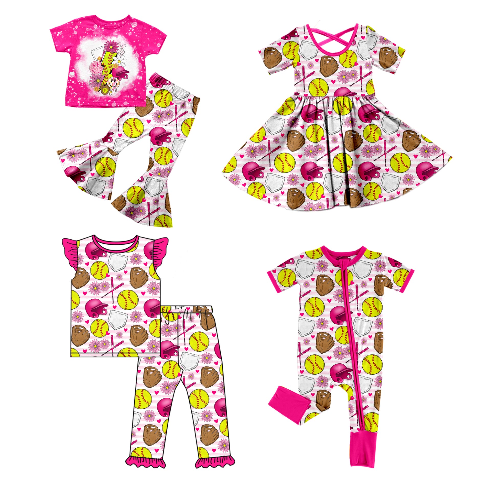 11.7(Custom Design Preorder MOQ 5 Each Design) Softball Flowers Print Girls Summer Matching Clothes Sisters Wear