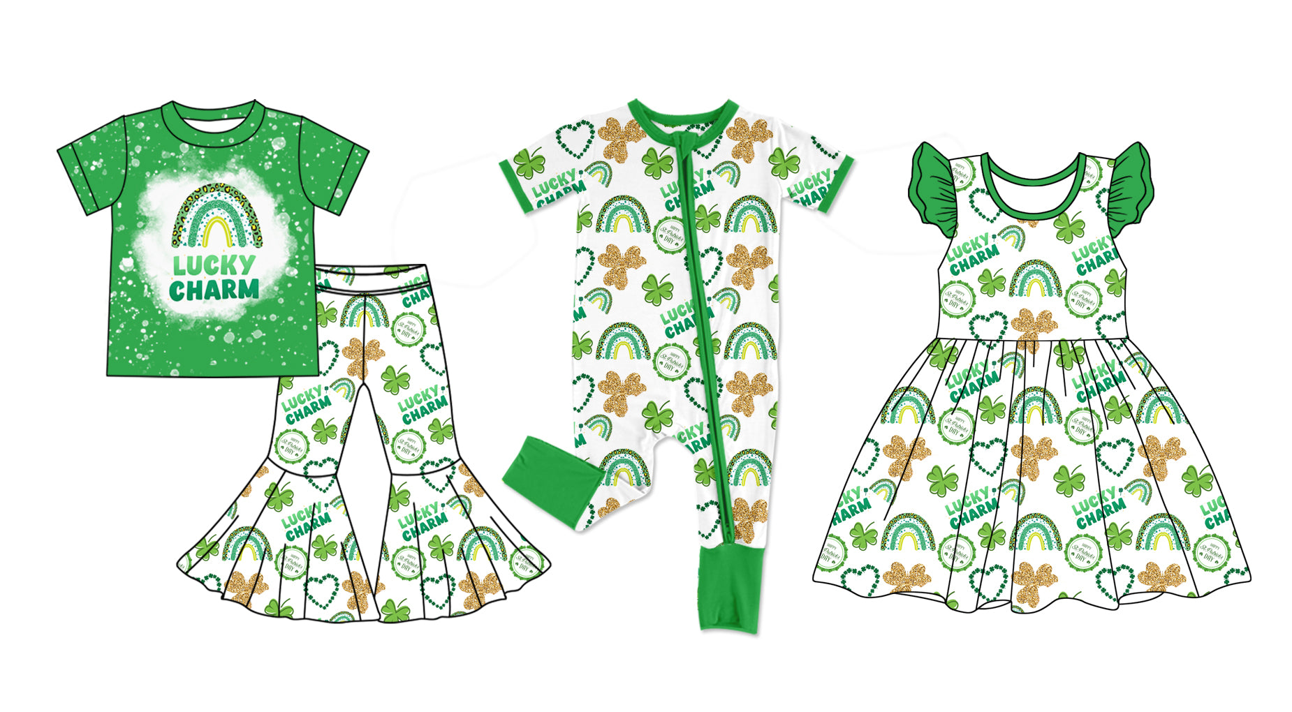 12.11(Custom Design Preorder MOQ 5 Each Design) LUCKY CHARM Rainbow Print Girls St. Patrick's Day Matching Clothes Sisters Wear