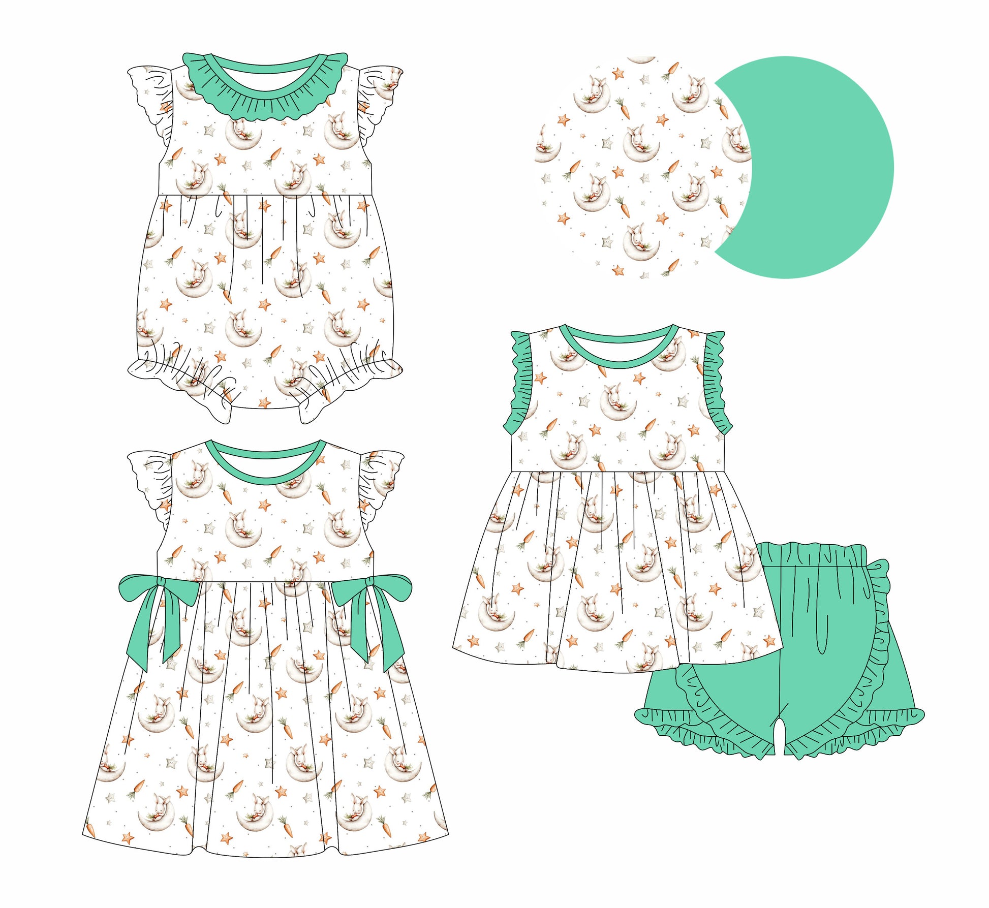 12.22 (Custom Design Preorder MOQ 5 Each Design) Carrot Bunny Print Girls Easter Matching Clothes Sisters Wear