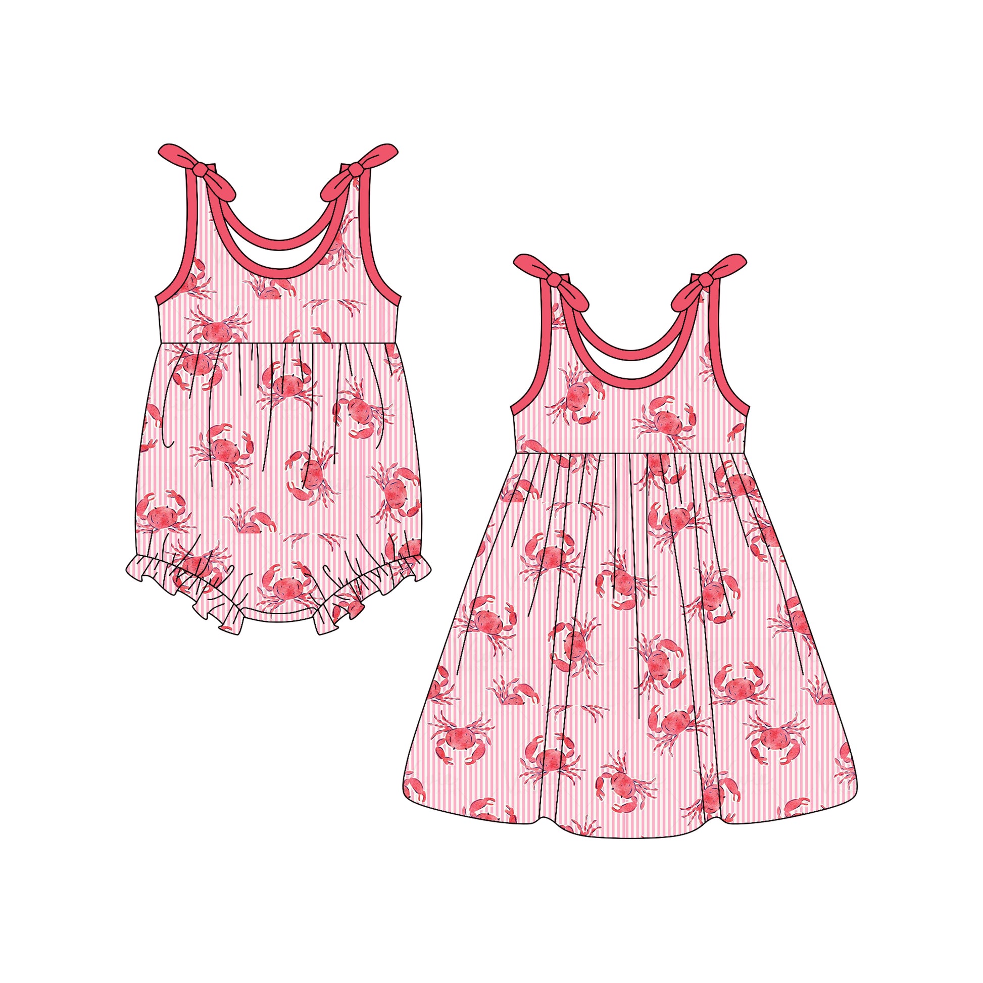 12.23 (Custom Design Preorder MOQ 5 Each Design) Crab Stripes Print Girls Summer Matching Clothes Sisters Wear