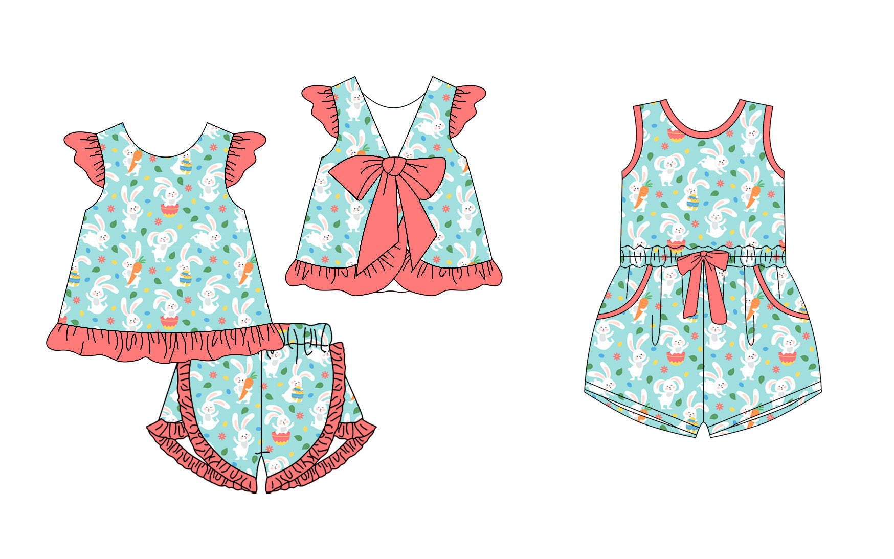12.23(Custom Design Preorder MOQ 5 Each Design) Bunny Eggs Print Girls Easter Matching Clothes Sisters Wear