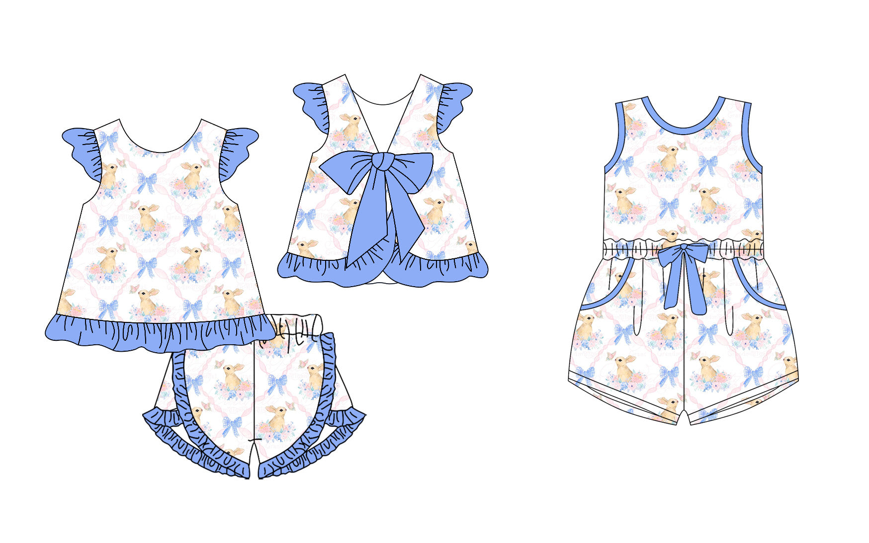 12.23(Custom Design Preorder MOQ 5 Each Design) Bunny Flowers Bows Print Girls Easter Matching Clothes Sisters Wear