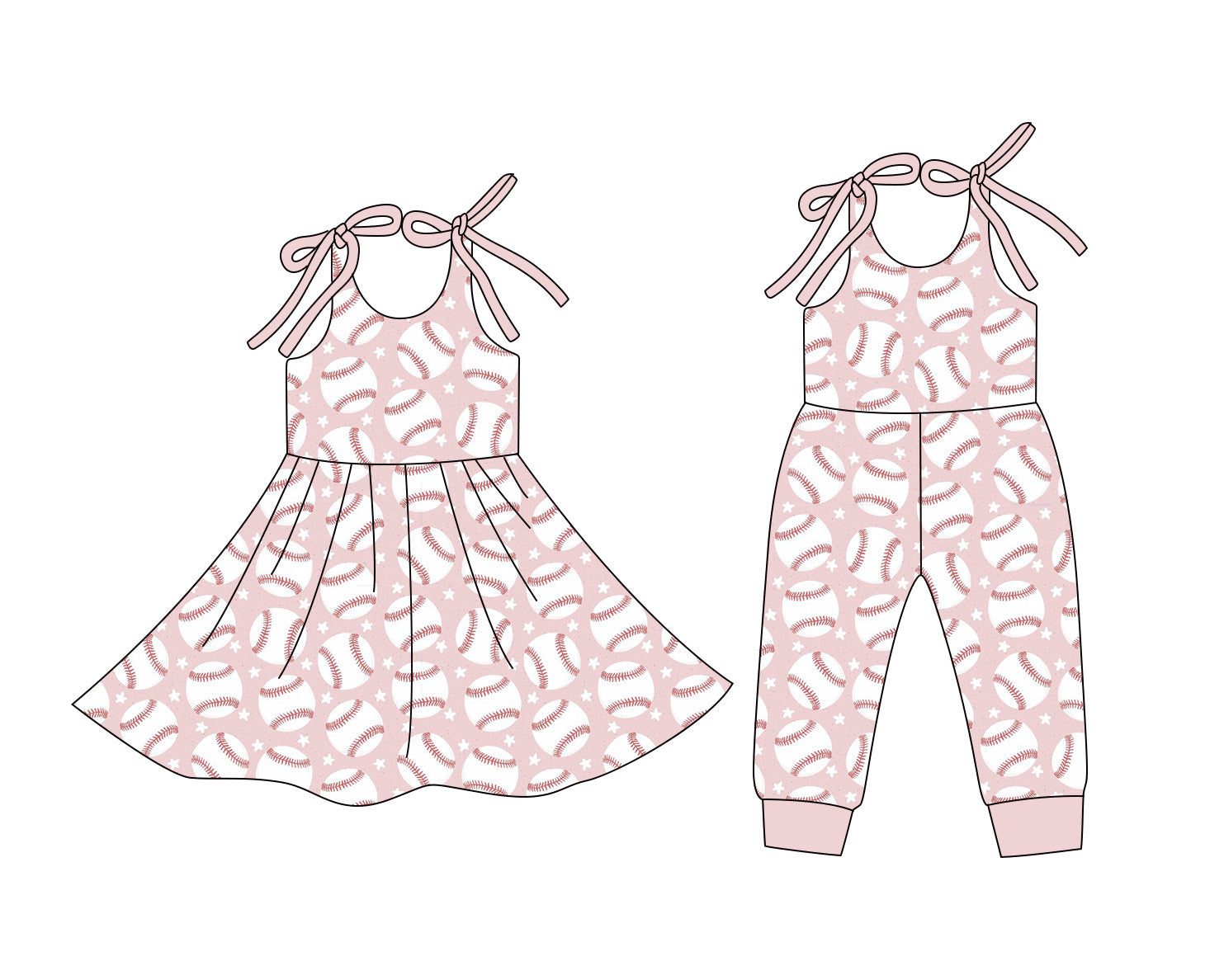 12.24 (Custom Design Preorder MOQ 5 Each Design) Baseball Stars Print Girls Summer Matching Clothes Sisters Wear