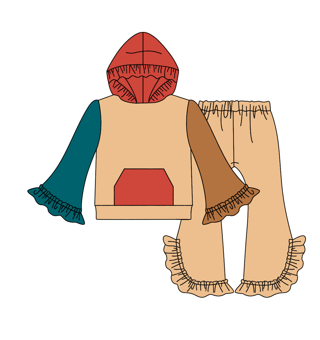 12.5(Custom Design Preorder MOQ 5) Brown Color Girls Hoodie Ruffle Clothes Set