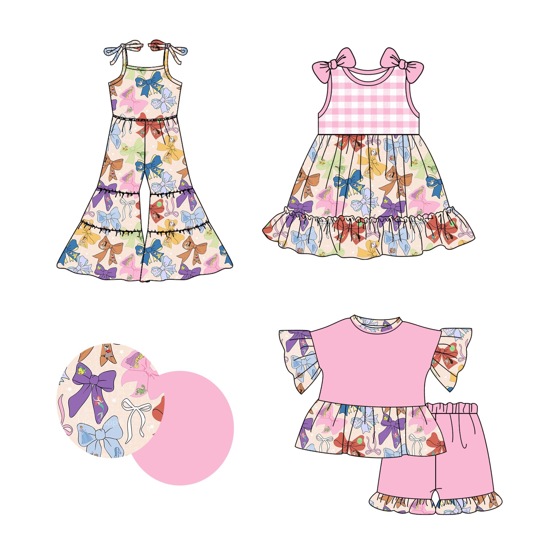 2.22(Custom Design Preorder MOQ 5 Each Design) Cartoon Figure Bows Print Girls Summer Matching Clothes Sisters Wear