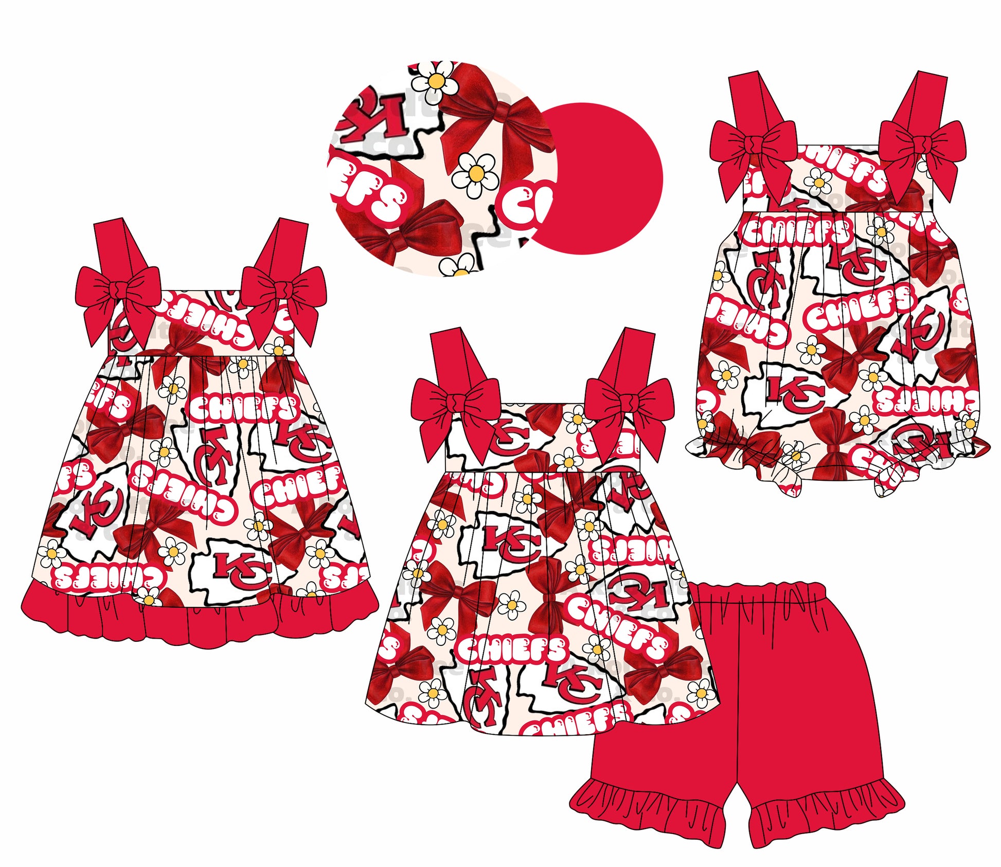 2.24(Custom Design Preorder MOQ 5 Each Design) Team's Chiefs KC Flowers Print Girls Summer Matching Clothes Sisters Wear