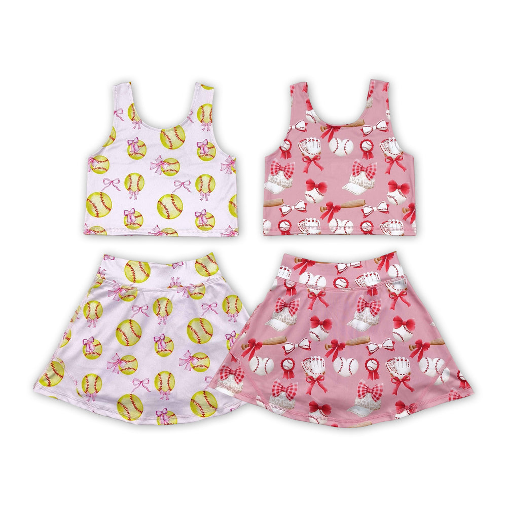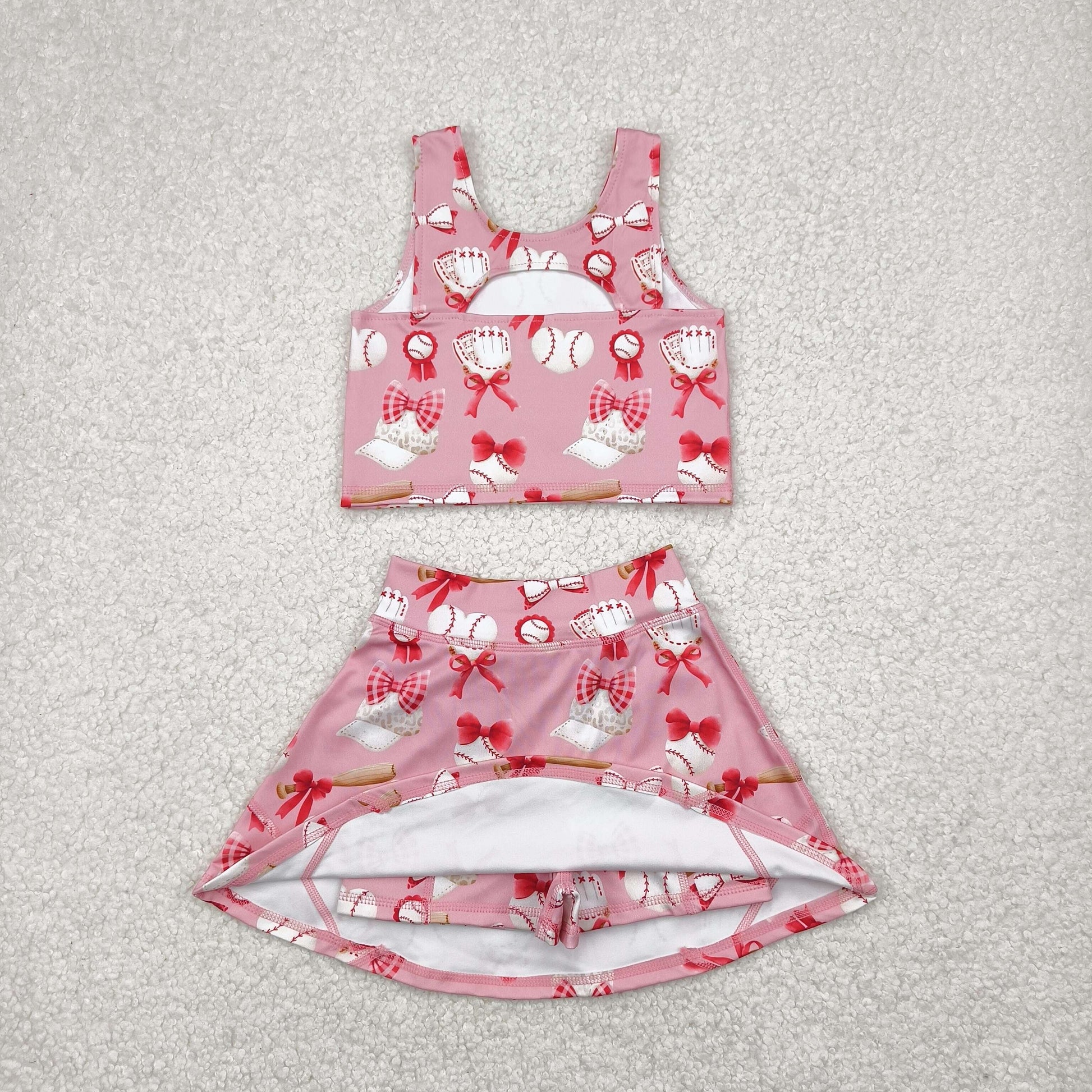 2 Colors Baseball Bows Tank Top Shorts Skirts Girls Summer Yoga Clothes Set Sisters Wear