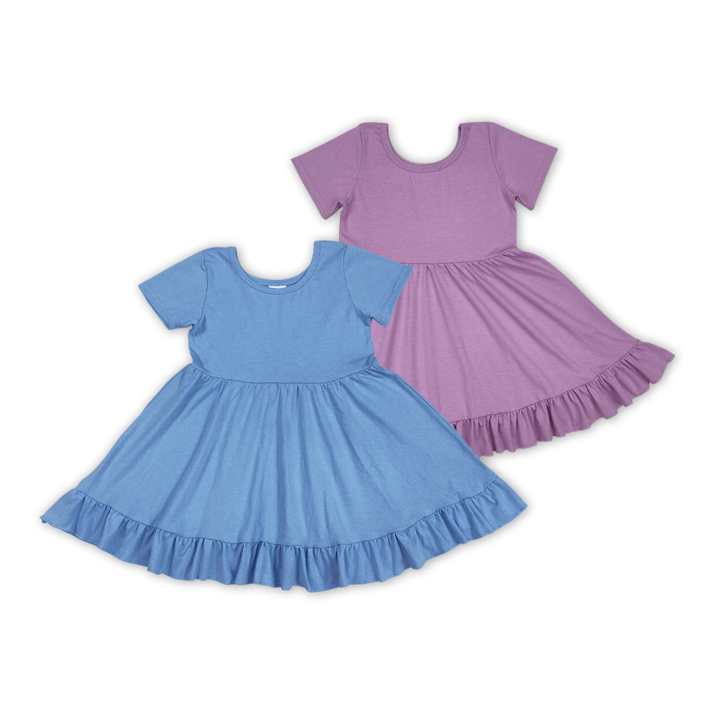 2 Solid Colors Girls Shorts Sleeve Summer Knee Length Dress