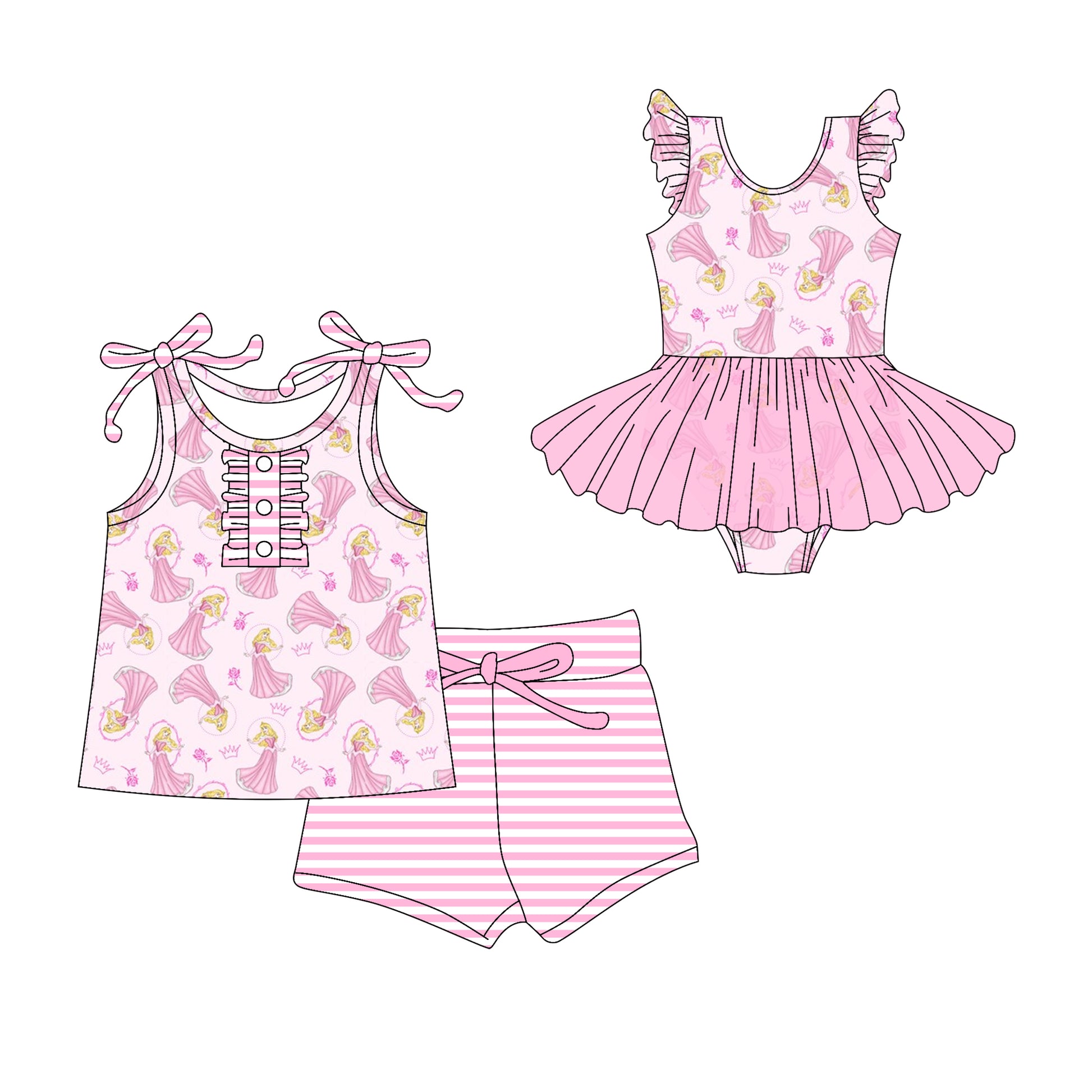 3.10(Custom Design Preorder MOQ 5 Each Design) Cartoon Princess Rose Print Girls Summer Matching Clothes Sisters Wear